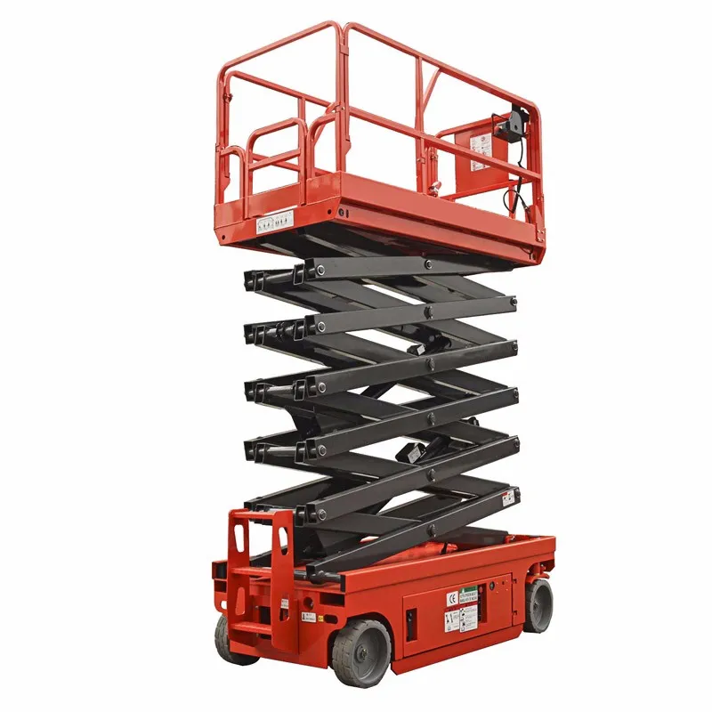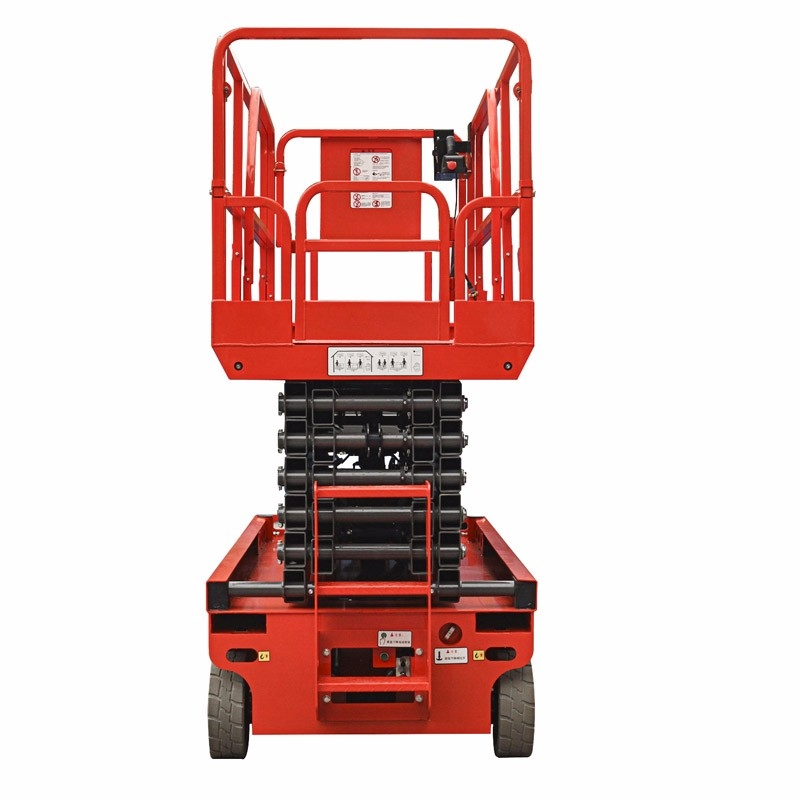 The mobile scissor lift is a four-wheel mobile lifting machine designed for vertical elevation and stable movement. The main scissor structure is manufactured from high-strength manganese steel rectangular tubes, ensuring durability and high load-bearing capacity.