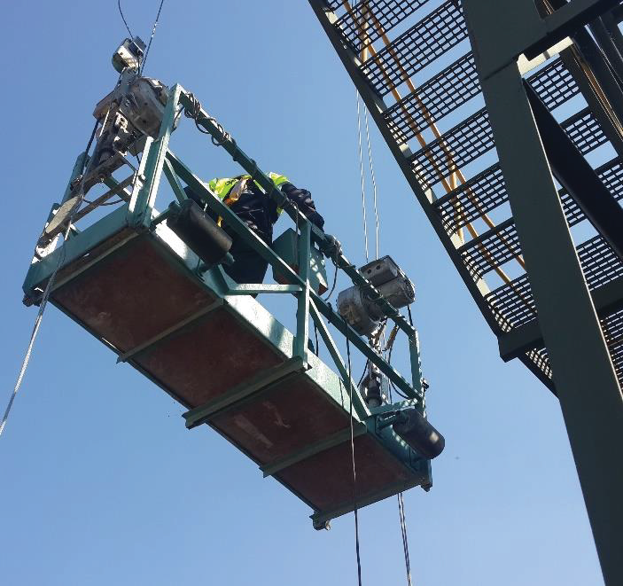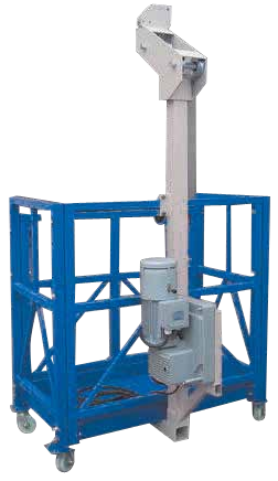 top of building, driven by the wire rope hoist along vertical facade to move up and