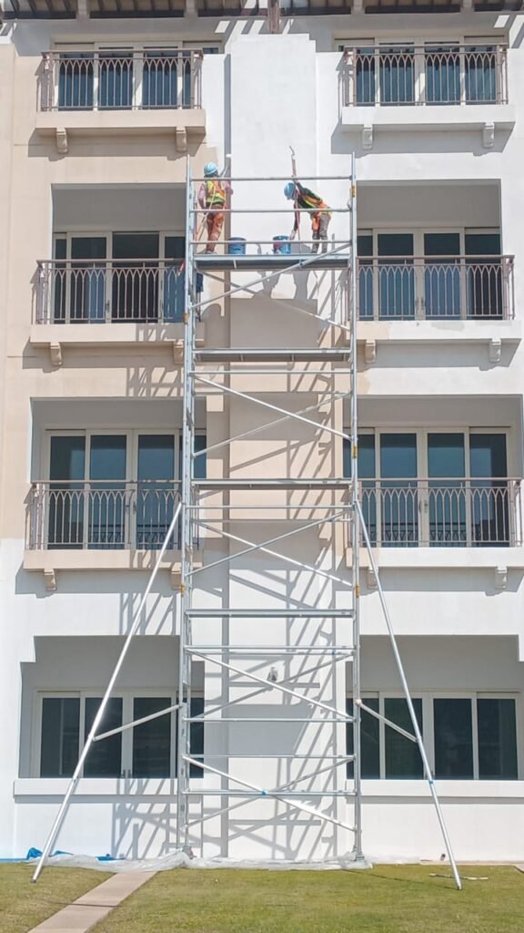 It is widely used in building construction projects to support workers and materials while performing tasks such as plastering, painting, façade installation, cleaning, and maintenance activities.