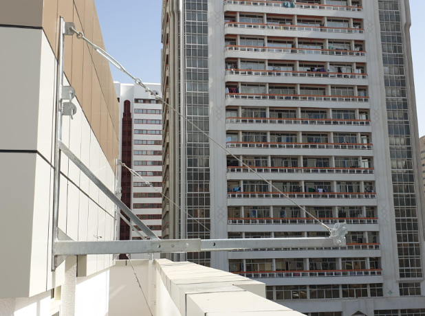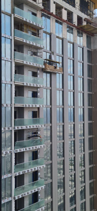 Temporary lifting equipment is supported by suspension device installed on the top of building, driven by the wire rope hoist along vertical facade to move up and down. Weighted load, working height, and length of the cradle is adjustable. Imad Yousef suspended platform oers reliable performance under the toughest site conditions, it is made of a lightweight aluminum section while handling the